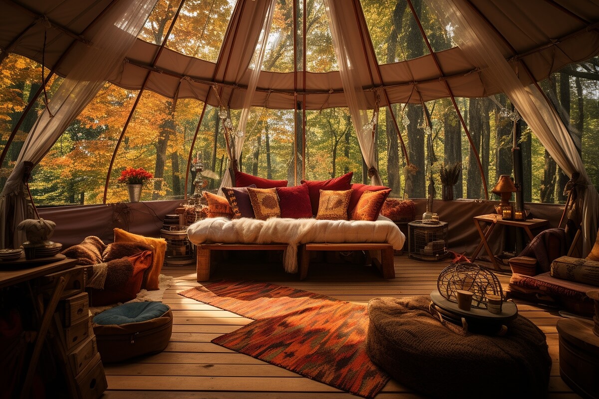 Our glamping sites are built with care offering cozy interiors, eco-conscious design.